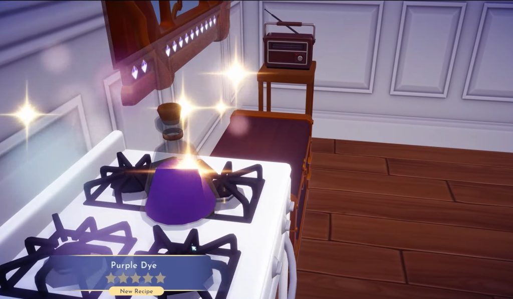 After gathering all of the ingredients, go to any cooking station. Interact with the station and navigate to the quests section to find the recipe for Purple Dye. Autofill all the ingredients and start cooking. Once done, bring the dyes to Daisy and talk to her about the fabric.