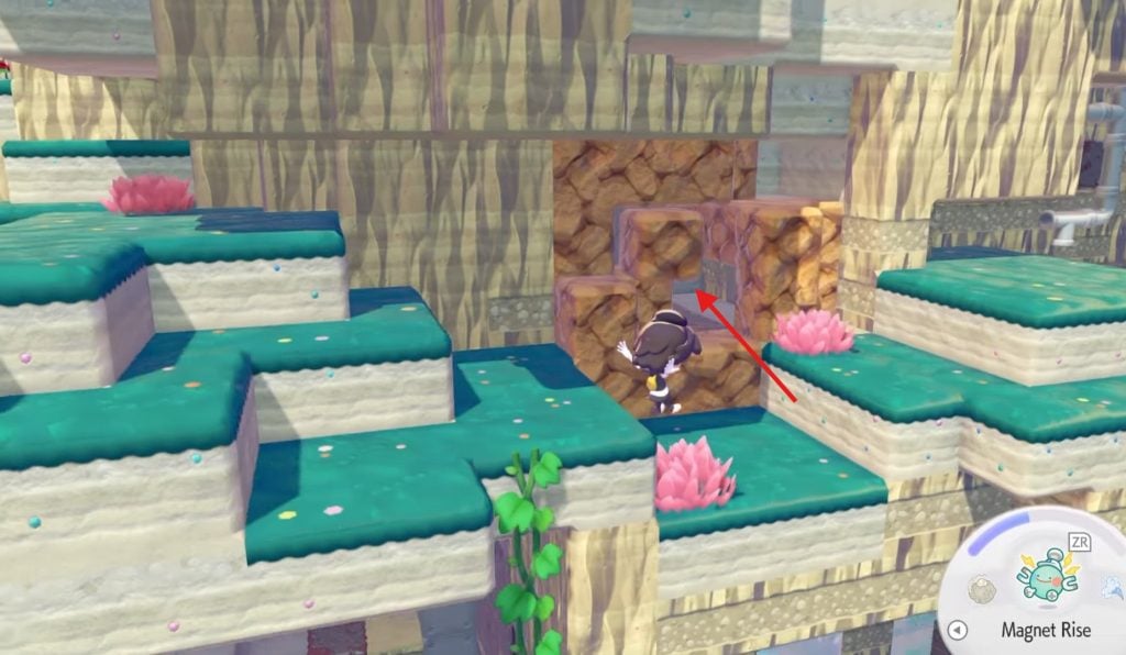 The easiest way to reach the Naptime Bed is to access the cave from the east side of the area. Head down the floating area and stay on the edge until you come across the breakable blocks. Use the Rock Smash to destroy the blocks and enter the cave. Now, head down the cave until you come across water. Here, you need to follow the water. Crouch to go ahead and then fall down on the left side. Here, you will enter a room with a computer, a diary, and the Naptime Bed on the floor.