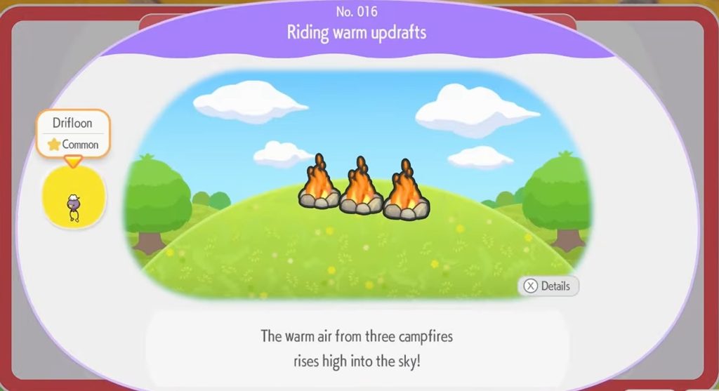 Restoring the Riding warm updrafts requires you to place 3x campfires on the ground. Go over to your workbench and craft 3 campfires using Sturdy Sticks and Stones. Now, place the campfires in a straight line on the ground. Lastly, you need to light up the campfires. Find Charmander and ask him to follow you. Bring Charmander to the campfires and he will light them up. It will restore the Riding warm updrafts habitat. Now, head back to Drifloon and speak with him to unlock him.