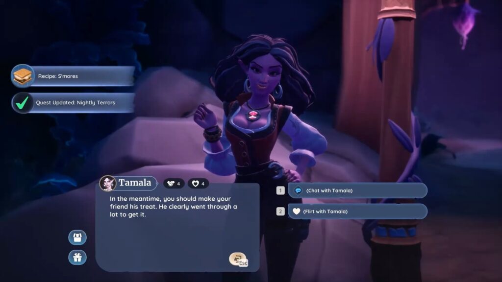 Before players get to make the S’mores, they will have to acquire the recipe. To unlock the S’mores recipe, players have to raise the Friendship Level with Ulfe to Level 2 and pursue the “Nightly Terrors” quest. During the quest, the players have to dig the dirt patches to find an Umbraan recipe. Upon finding the recipe, take it to Tamala to learn what it is. After speaking with Tamala, players will learn the S’mores recipe.