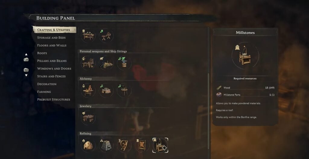 - 1x Millstone Parts: Craft at the Workbench (Level 2) using 15x Stone.